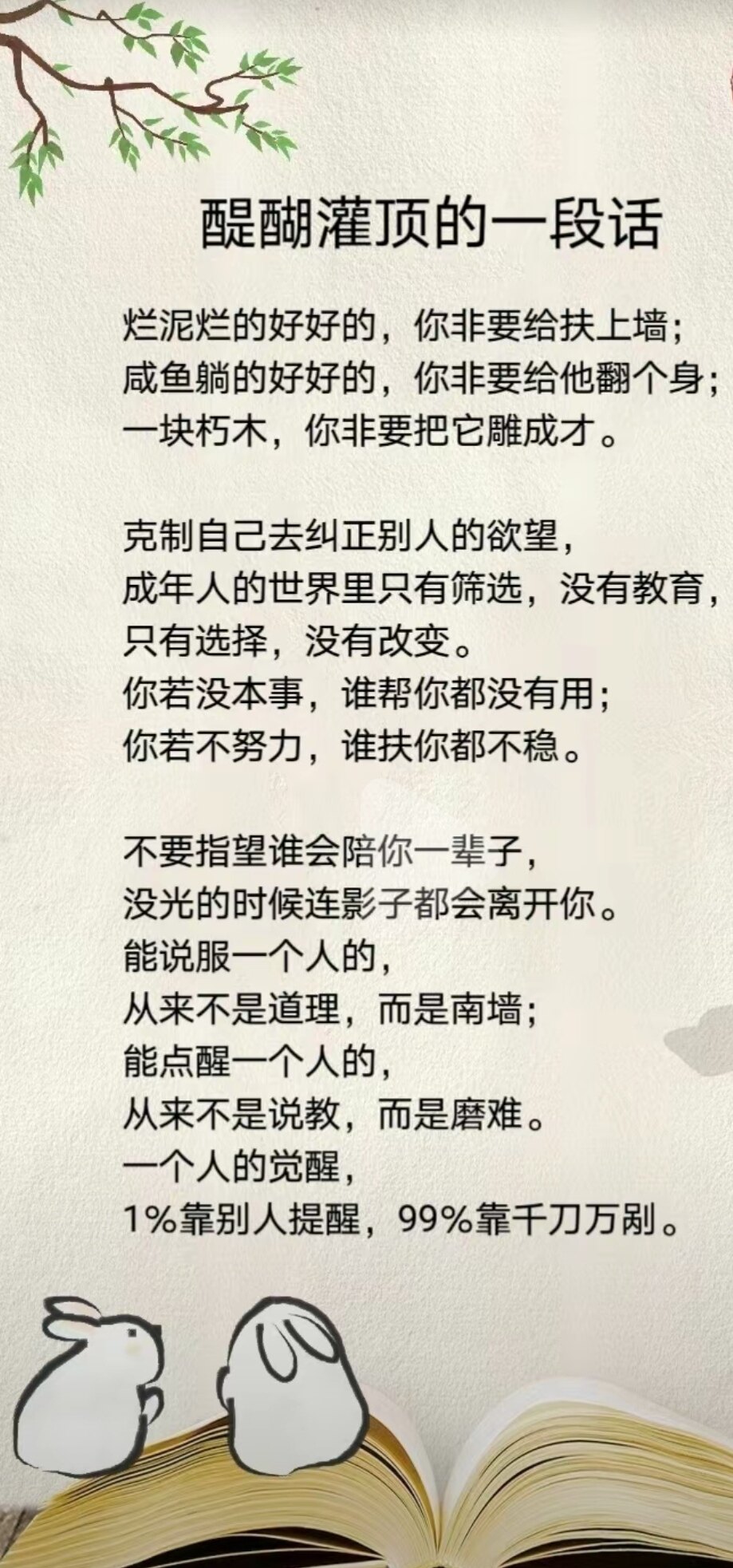 没错,每个人都应该做好自己,不要去干涉别人的事情。每个人都有自己的命运和人生轨迹,我们只需要关注自己的成长和发展,做好自己的本职工作,就已经很好了。同时,也要尊重他人的选择和决定,不要去干涉别人的生活。